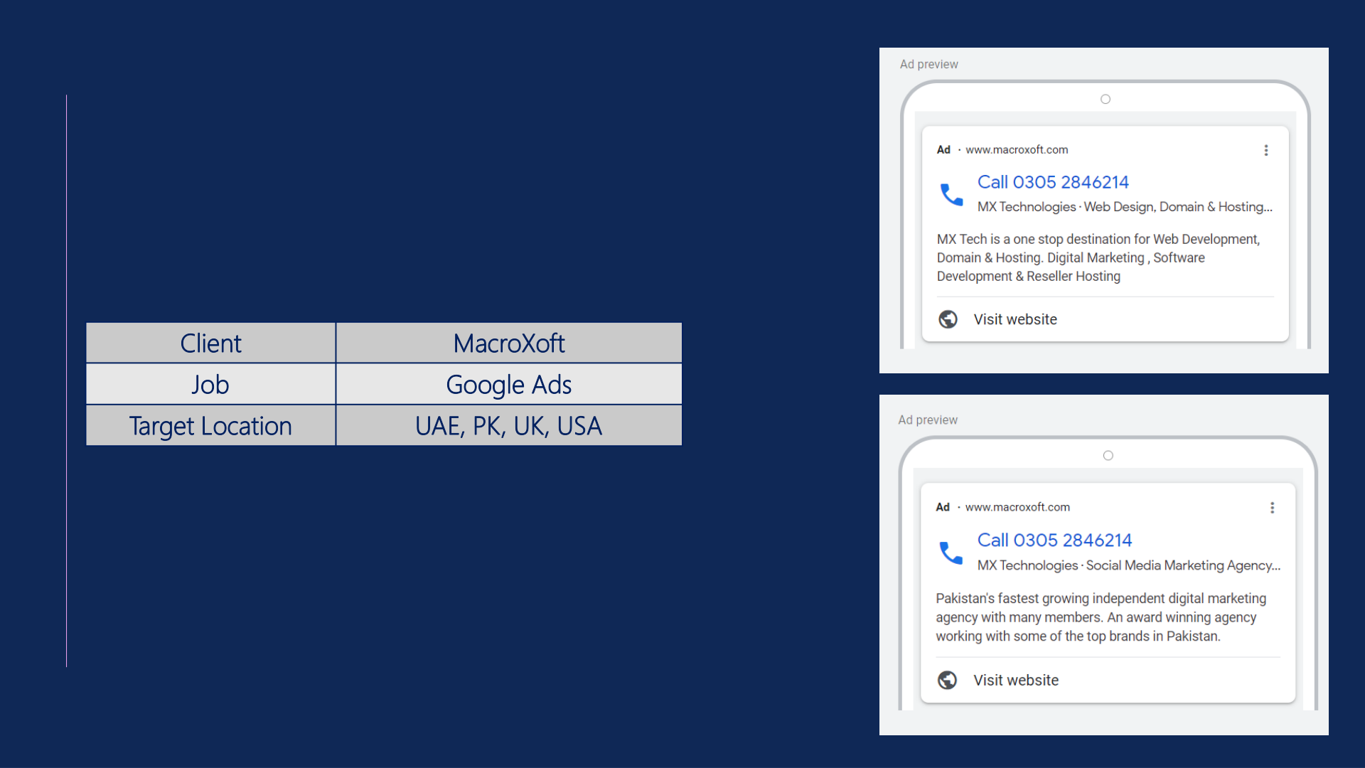 The ads position MacroXoft as a one-stop destination for web development, domain & hosting, digital marketing, software development, and reseller hosting. They also highlight the company as Pakistan's fastest-growing independent digital marketing agency, working with top brands and offering comprehensive digital solutions.